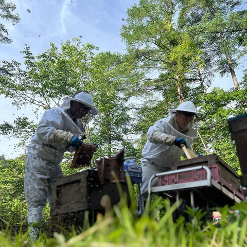 一匹のミツバチが一生でつくれる蜂蜜は、わずかティースプーンひとさじ。数万のミツバチたちが命をかけてうみだしたもの。そう思いながら、ひと瓶、ひと瓶。人の手で。時間も、手間もかかるけれど、ほんとうに大切なことだから。人も、まじめに、ていねいに。